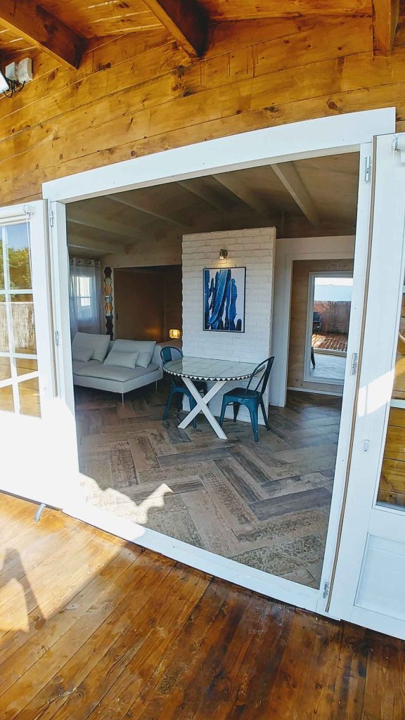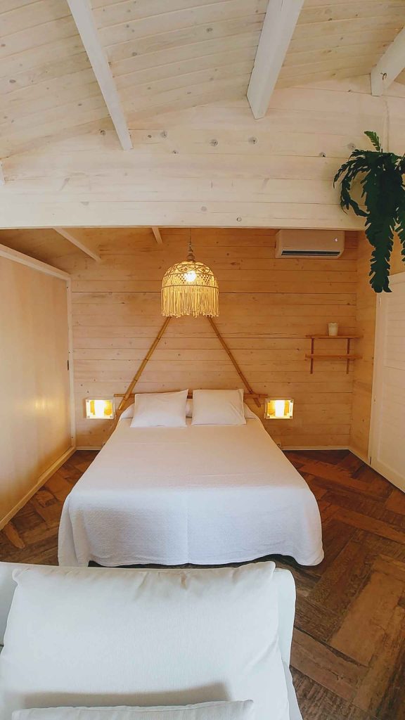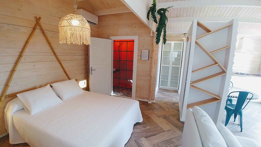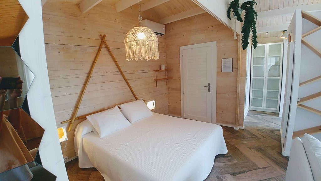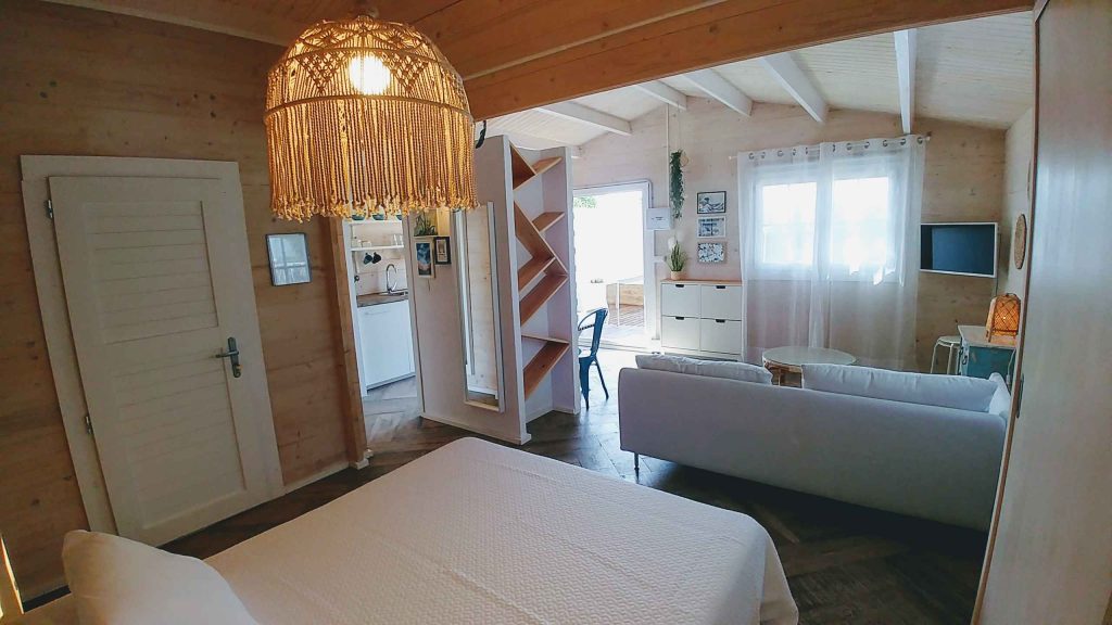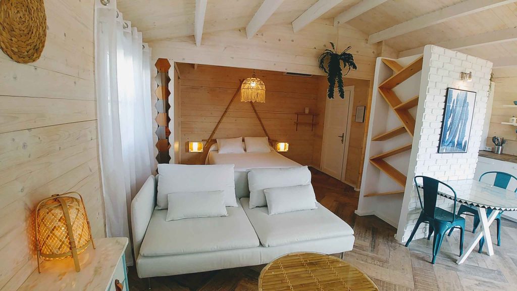 Tiene unos 36 m², de espacio abierto (excepto el baño). Cuenta con cama de matrimonio de 150 (queen size); sofá de tres plazas, que si se hace cama, es individual. Capacidad para un máximo de 3 personas, o dos adultos con dos niñ@s pequeñ@s.