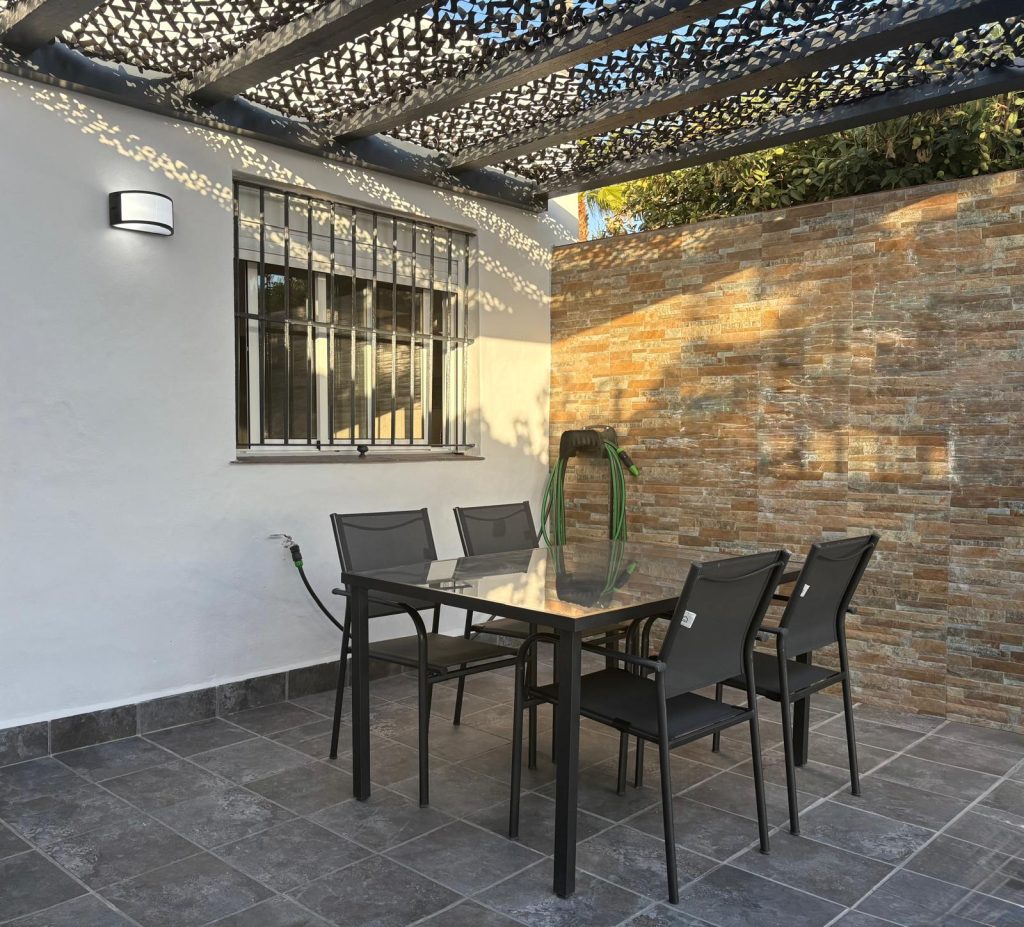 La Casa Ana, es una casa de 2 dormitorios uno con cama de matrimonio y el otro con dos camas individuales. La capacidad es para 4 personas y hay una cama supletoria para una personas/niño adicional con un suplemento de 15 euros diarios. Salón comedor con cocina, baño y dos porches, uno el la entrada con con vista mar y el otro en la parte trasera con zona chill out.