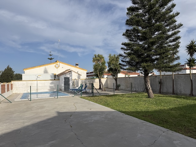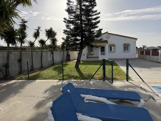 Chalet Sara a unos 700m de la playa en El Palmar con 3 dormitorios, dos baños y piscina privada. Los dormitorios tienen: uno  con cama de 150 cm , uno con cama de 135 cm y el ultimo con dos camas de 105 cm. La capacidad máximo para este alojamiento es de 6 personas no son permitidas mas personas. Tiene un amplio salón con chimenea y dos sofás. Una cocina con vitrocerámica y lavavajillas. Una parcela de unos 500 metros cuadrados completamente vallada, para que pueda llevar tu mascota, y la piscina privada también vallada para la seguridad de los mas pequeños.  Tiene mucho espacio para aparcar hasta 3 coches sin problema dentro de la misma parcela. Reserva cuanto antes tus vacaciones en nuestro chalet.